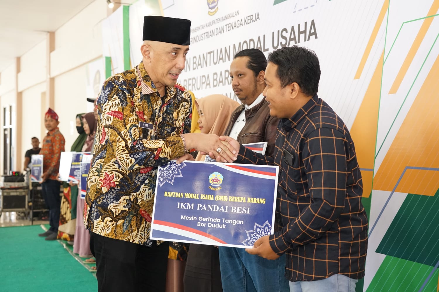 Penyerahan bantuan secara simbolis dilakukan oleh Penjabat (Pj) Bupati Bangkalan, Arief Moelya Edi, pada Kamis (19/9/2024) di aula Taman Budaya Sentra Industri Kecil Menengah (IKM), akses Suramadu, Desa Baengas, Kecamatan Labang. Bantuan yang bersumber dari Dana Bagi Hasil Cukai Hasil Tembakau (DBHCHT) tahun 2024 ini diberikan dalam bentuk peralatan usaha.