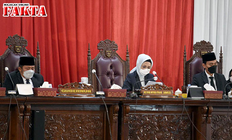 Rapat Paripurna dipimpin Ketua DPRD Provinsi Sumsel Hj. R.A. Anita Noeringhati, S.H., M.H., didampingi Wakil Ketua DPRD H.M. Giri Ramanda N Kiemas, SE, MM dan H. Muchendi M. SE, dihadiri Gubernur Sumsel H. Herman Deru.