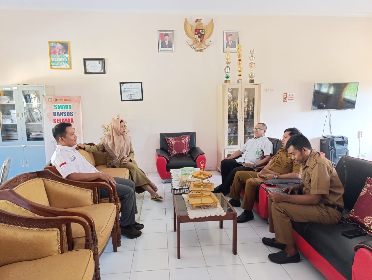 FAKTA – Sekembali dari menunaikan tugas perjalanan dinas luar daerah, Kepala Dinas Sosial Kabupaten Selayar, Sulawesi Selatan, Hj. Satmawati, S. Sos., M. AP, berkenan menerima kunjungan silaturahmi kepala Badan Penyelenggara Jaminan Sosial (BPJS) Ketenagakerjaan yang datang bersama staf.