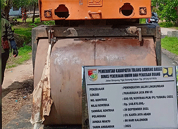 Di papan anggaran tidak tercantum volume jalan lingkungan yang diaspal dan setelah pengerjaan jalan selesai alat berat ditinggalkan petugas. Beberapa warga RW 5 mengeluhkan keberadaan alat berat tersebut di tengah jalan. (wis/oln)