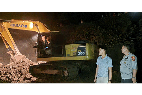 Alat berat diterjunkan ke lokasi untuk membersihkan material longsor.