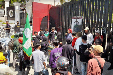 Aksi demonstrasi tersebut di gelar di depan kantor gubernur dan DPRD Sulawesi Barat, tepatnya di Jl. Abdul Malik Pattana Endeng, Kecamatan Simboro, Kab Mamuju, Prov. Sulawesi Barat, Senin, (15/5/2023)