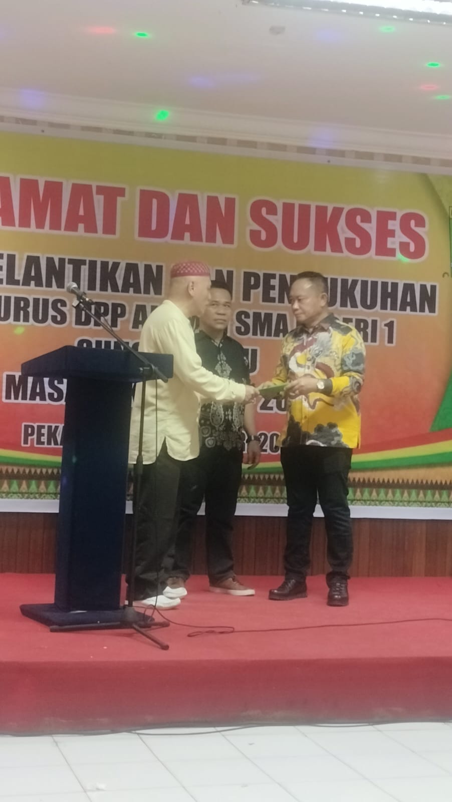 Prosesi serah terima jabatan berlangsung di Aula Hotel D’Lira Syariah, Pekanbaru, Jumat (6/2/2026), dan disaksikan perwakilan Dewan Pimpinan Wilayah (DPW) serta alumni lintas angkatan SMA Negeri 1 Sungai Limau.