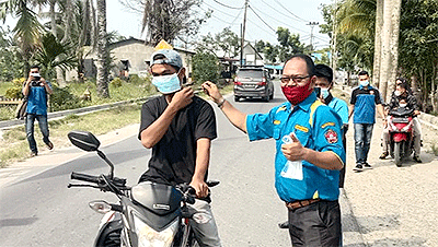 Hal tersebut ditegaskan Andi Lestari kepada para pengurus Karang Taruna Kecamatan Talawi, ketika meninjau penyerahan masker dan vitamin C dari Karang Taruna kepada masyakat yang tidak memakai masker di sepanjang jalan talawi, Sabtu sore (25/9/2021).