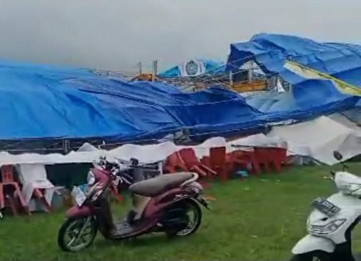 Tak hanya itu, angin kencang yang terjadi pada hari Jumat (6/12/2024) siang, tersebut ikut meluluh lantakkan belasan petak tenda yang terpasang di lokasi pusat penyelenggaraan jambore HKG PKK, di Lapangan Pemuda, Benteng.