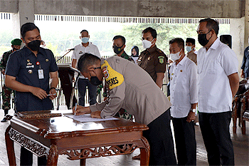 Kapolres Tubaba AKBP Sonhut P. Silalahi menyampaikan, kegiatan deklarasi damai Pemilihan Kepala Tiyuh (Pilkati) serentak Kabupaten Tubaba 2021, seluruh kontestan di pilkati untuk selalu menjaga ketertiban dan situasi kondusif di masyarakat.