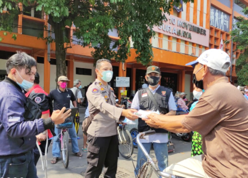 Kegiatan satu diantara organisasi sayap ormas Arek Jogoboyo,Surabaya. Suntoro Dhani, Korlap Arek Jogoboyo Disability Care menjelaskan acara ini membantu Pemkot Surabaya menyosialisikan tertib prokes memutus rantai Covid-19 di kota Pahlawan.