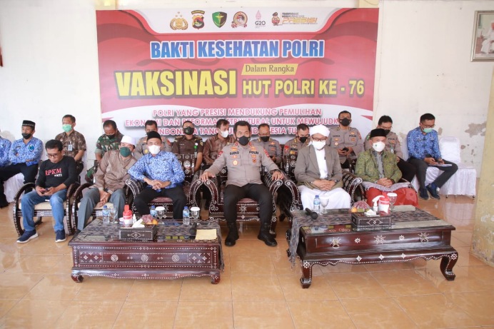 Kapolres Lombok Tengah menyampaikan bahwa kedatangan Kapolda NTB di Pondok Pesantren Yanmu NW Praya dalam kegiatan bakti kesehatan berbentuk vaksinasi dan penyerahan bantuan sosial dalam rangka menyambut Hari Bhayangkara yang ke-76 menuju Polri yang presisi dalam mendukung pemulihan ekonomi dan reformasi struktural untuk mewujudkan Indonesia tangguh dan Indonesia tumbuh.