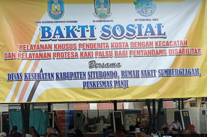 FAKTA – Dalam rangka melaksanakan Baksos (Bakti Sosial), Dinas Kesehatan Kabupaten Situbondo bekerjasama dengan Rumah Sakit Umum Daerah (RSUD) Sumberglagah Kabupaten Mojokerto, memberikan kontribusi alat bantu gerak berupa kaki palsu bagi penderita kusta karena faktor kecacatan.
