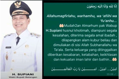 Bupati Balangan H Abdul Hadi menceritakan, sosok Wakil Bupati Supiani merupakan seorang pemimpin dan seorang tokoh pendiri Kabupaten Balangan.
