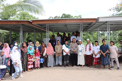 Kapolres Lombok Tengah bersama Ketua Bhayangkari Cabang Lombok Tengah pada akhir kunjungannya melaksanakan makan siang secara berjamaah dengan Pimpinan dan pengurus Pondok Pesantren serta anak anak yatim piatu yang ada di Ponpes.