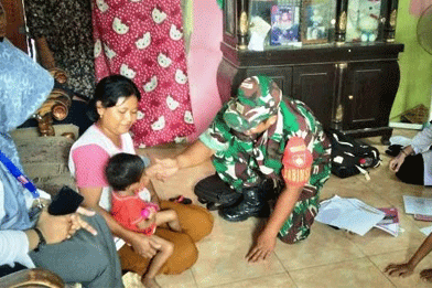 Terpisah, di Desa Limbangan RT. 04 RW. 07 Kecamatan Kersana, babinsa Serda Solikhin bersama bidan desa setempat Nunung Hayati Amd.Keb, juga melakukan monitoring terhadap Muzamil Angga Wijaya (3) putra dari Eko Nuryanto.