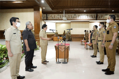 FAKTA – Bupati Badung I Nyoman Giri Prasta memimpin upacara pelantikan dan pengambilan sumpah jabatan terhadap 1 orang Pejabat Pimpinan Tinggi Pratama, 28 orang Pejabat Administrator, 45 orang Pejabat Pengawas dan 31 orang Pejabat Fungsional di lingkungan Pemerintah Kabupaten Badung, Senin (22/8/2022) bertempat di Ruang Kertha Gosana Puspem Badung.