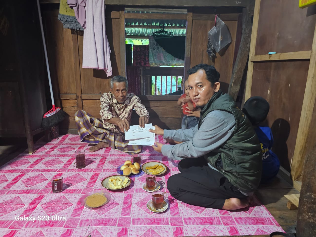 Bantuan biaya pembelian dan pengadaan material seng, diterima Jamaluddin (70 tahun) yang didampingi isterinya, ST. Syamsiah (67 tahun).