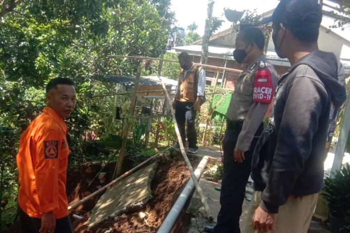 Bencana Tanah Longsor, Bhabinkamtibmas Polsek Kadudampit Tinjau Lokasi Terdampak