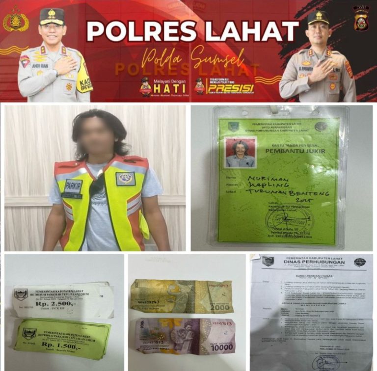 Menindaklanjuti informasi tersebut, petugas Satreskrim Polres Lahat mendatangi lokasi dan mengamankan seorang pria berinisial NN (43), warga Kelurahan Bandar Jaya, Kecamatan Lahat. Pria tersebut diduga melakukan pungutan parkir kepada pengunjung tanpa memberikan karcis yang sah.