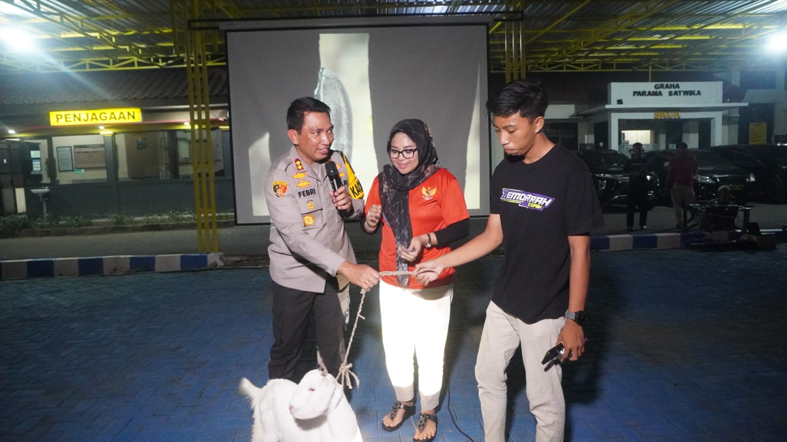 Tidak hanya itu, Kapolres Bangkalan juga memberikan kejutan dengan hadiah doorprize. Dalam nobar ini, beberapa penonton beruntung berkesempatan memenangkan hadiah doorprize berupa 2 ekor kambing.