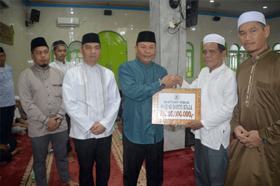 Pj Bupati Batola memberikan bantuan ke sejumlah masjid didampingi Sekretaris Daerah (Sekda) Batola Ir. H. Zulkifli Yadi Noor, M. Sc, para Asisten, Staf Ahli, Kepala Satpol PP Dahtiar Fajar, Kepala Dinas Komunikasi dan Informatika (Diskominfo) Herry Sasmita dan para Camat.