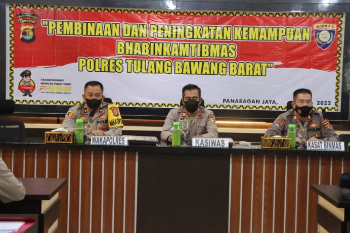 Majalahfakta.id – Polres Tulang Bawang Barat Polda Lampung melalui Satuan Pembinaan Masyarakat (Sat Binmas) menggelar Pembinaan dan Peningkatan Kemampuan (Binkatpuan) kepada para Bhabinkamtibmas di Aula Mapolres Tulang Bawang Barat, Selasa (14/6/2022).