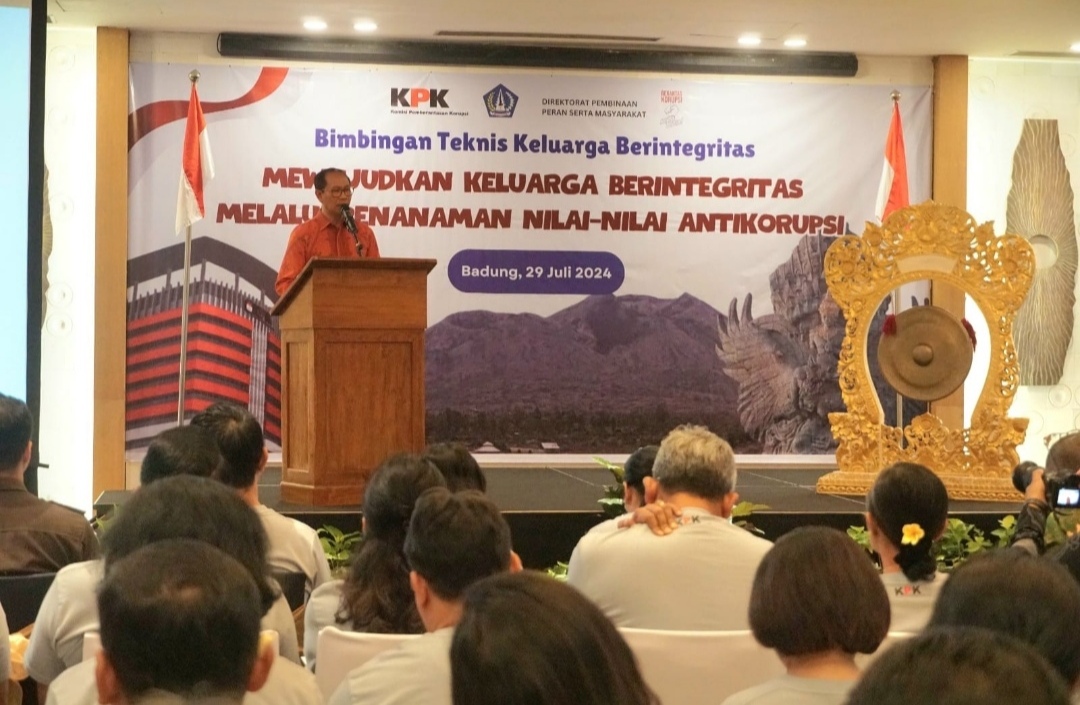 Plh. Direktur Pembinaan Peran Serta Masyarakat KPK RI Jhonson Ridwan Ginting mengatakan Bimtek Keluarga Berintegritas sebagai upaya untuk menanamkan Nilai Nilai Anti Korupsi yang ditujukan pada para pasangan Pejabat di Badung agar mereka dapat memahami apa itu praktek korupsi bagaimana dalam keluarga bisa menanamkan nilai nilai anti korupsi.