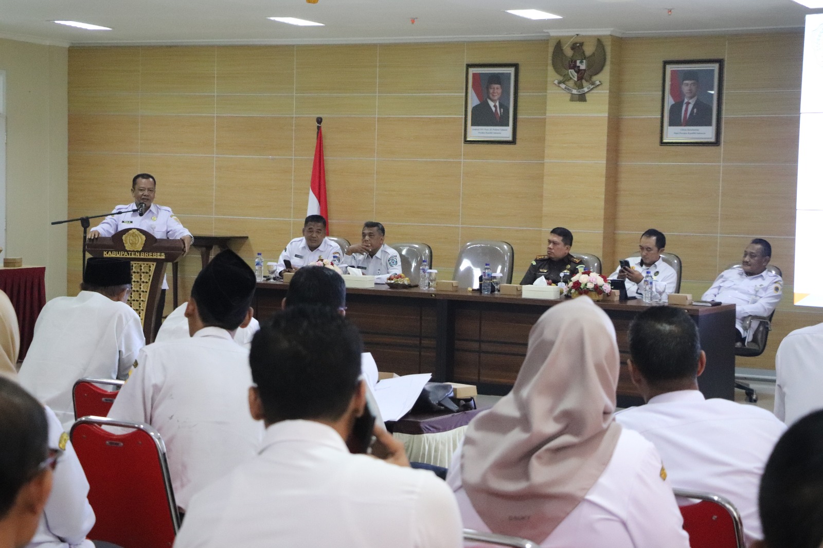 FAKTA – Pemerintah Kabupaten Brebes menggelar Rapat Koordinasi (Rakor) Pembahasan Optimalisasi Pendapatan Pajak Bumi dan Bangunan Perdesaan dan Perkotaan (PBB-P2), Rabu (23/4/2025). Rakor yang dipimpin Wakil Bupati Brebes Wurja SE di lantai 5 Kantor Pemerintahan Terpadu (KPT) Kabupaten Brebes sebagai upaya penderasan capaian target 40 persen dalam waktu 100 hari kinerja Bupati dan Wakil Bupati Brebes yang baru.