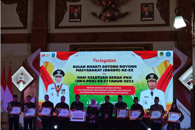 Seiring acara puncak tingkat propinsi BBGRM Jawa Timur diberikan penyerahan penghargaan yakni pelaksanaan terbaik 10 program pokok PKK :