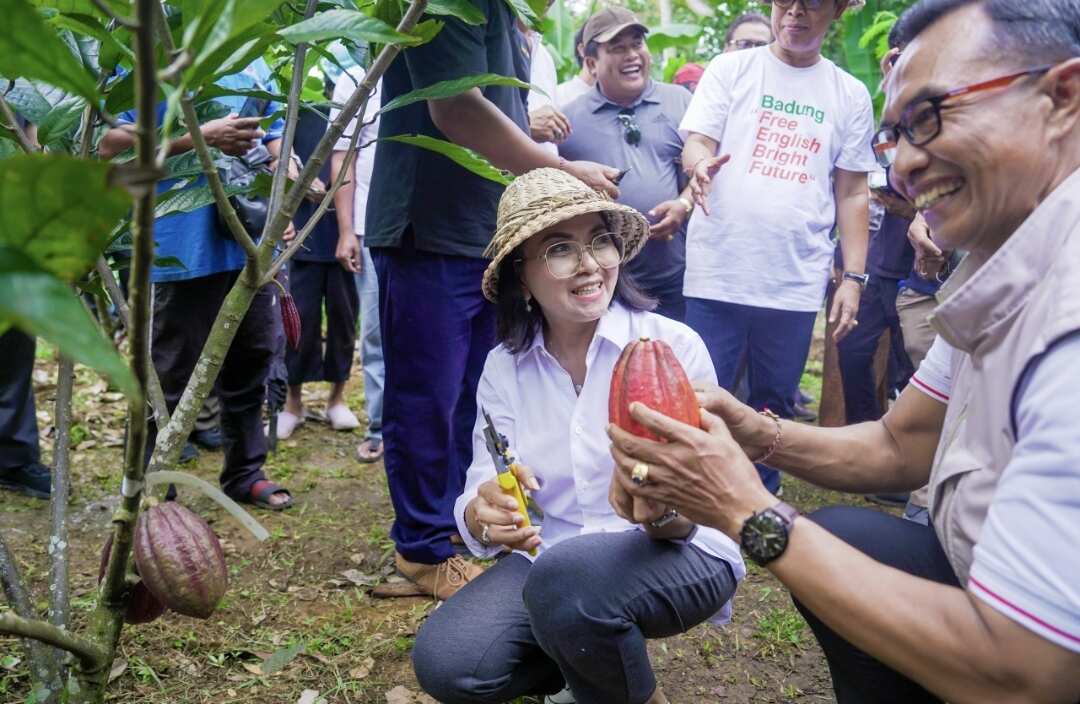 FAKTA – Bupati Badung I Wayan Adi Arnawa bersama Ketua TP PKK Kabupaten Badung Rasniathi Adi Arnawa meninjau Kebun Kakao sekaligus memetik Kakao yang sudah bisa dimakan langsung serta bertatap muka dengan Petani Kakao yang ada di wilayah Banjar Lipah, Desa Petang, Kecamatan Petang, Badung, Sabtu (31/5/2025).