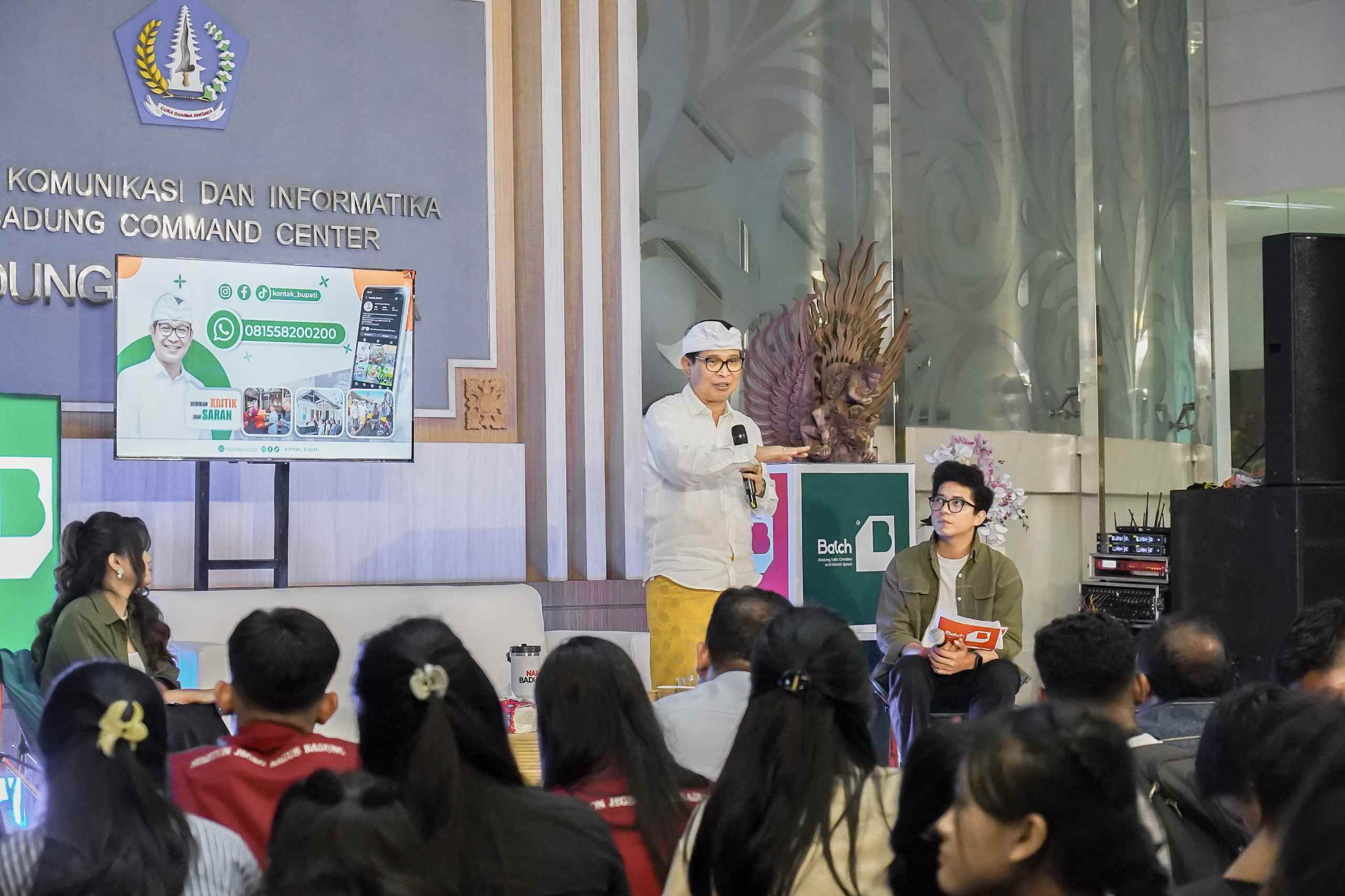 FAKTA – Bupati Badung I Wayan Adi Arnawa menghadiri acara BATCH : Badung Talks Creative and Hetero Space yang diinisiasi oleh Dinas Komunikasi dan Informatika Kabupaten Badung bertempat Lobby Command Center, Diskominfo Badung, Rabu (29/10/2025). Acara ini dihadiri oleh Ketua Komisi II DPRD Badung I Made Sada, Asisten Perekonomian dan Pembangunan Setda Badung IB Gede Arjana beserta Kepala OPD di lingkungan Pemkab Badung, Camat dan Lurah se-Kabupaten Badung, Ekraf Badung, Siswa dan siswi SMA 1 Mengwi, SMA 1 Kuta Utara dan komunitas masyarakat.