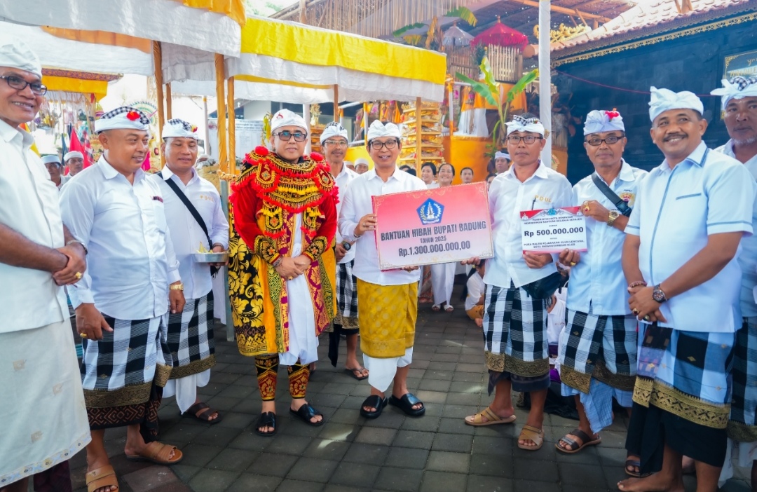 FAKTA – Bupati Badung I Wayan Adi Arnawa menghadiri Karya Mamungkah, Ngenteg Linggih, Tawur Balik Sumpah, Pedudusan Menawa Ratna di Pura Dalem Pejarakan Ulun Lencana, Desa Adat Kerobokan, Desa Padangsambian Klod, bertepatan dengan rahina Anggara Kasih Julungwangi, Selasa (8/4/2025). Karya yang dipuput Ida Pedanda Gede Buruan Darmasaba ini turut dihadiri Walikota Denpasar I Gusti Ngurah Jaya Negara, Kepala Dinas Kebudayaan Badung I Gde Eka Sudarwitha, Perwakilan Camat Denpasar Barat, Perbekel Desa Padangsambian Klod, Bendesa Adat Kerobokan serta krama pengempon pura setempat. Sebagai wujud dukungan Bupati Adi Arnawa serahkan bantuan dana hibah tahun 2025 secara simbolis sebesar Rp1,3 miliar.