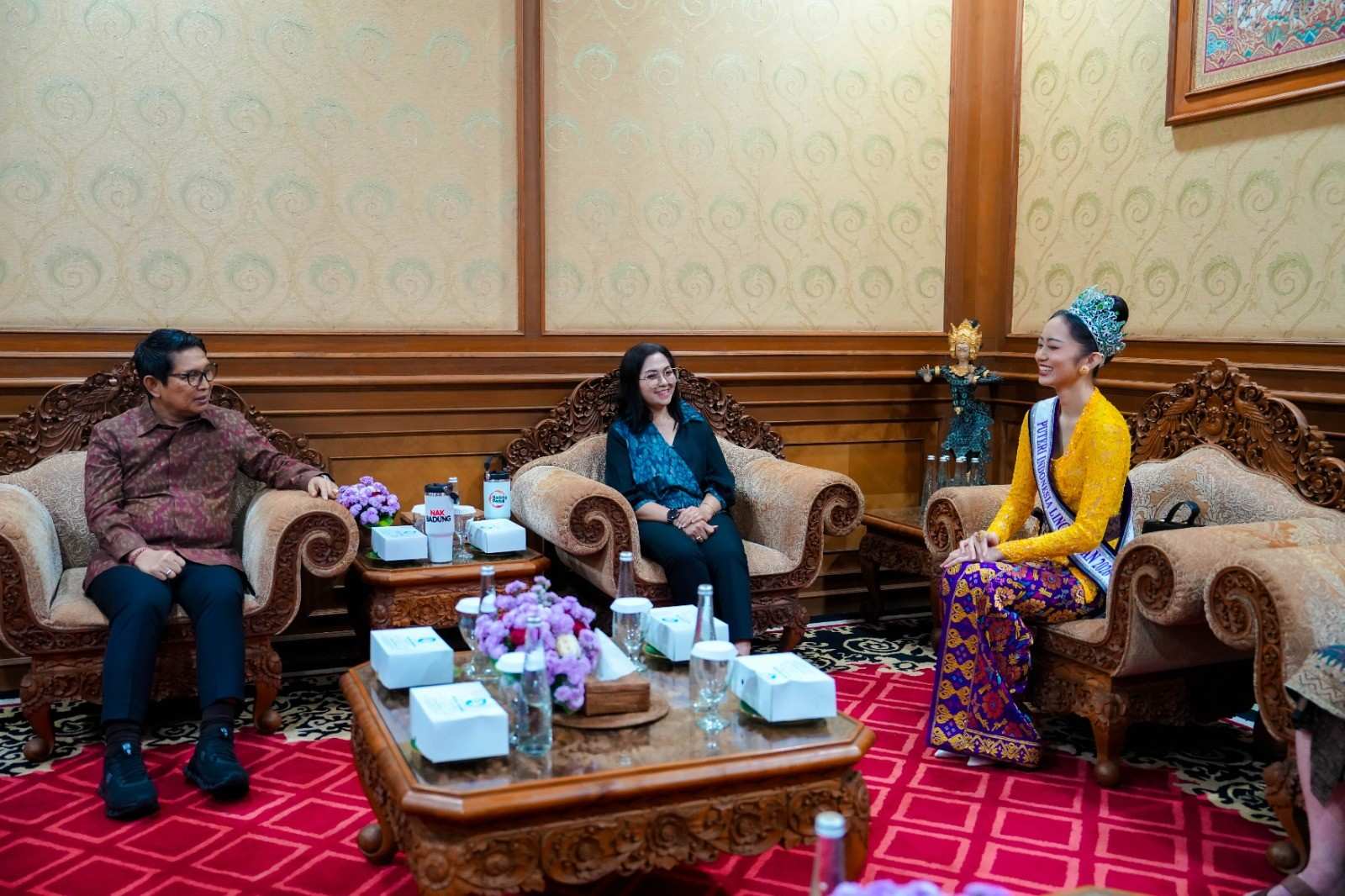 FAKTA – Bupati Badung, I Wayan Adi Arnawa, didampingi Ketua TP PKK Kabupaten Badung, Nyonya Rasniathi Adi Arnawa, menerima kunjungan Puteri Indonesia Lingkungan 2026, Victoria Veronica Titisari Kosasieputri, Selasa (28/4/2026). Pertemuan berlangsung hangat di Ruang Tamu Bupati, Gedung Pusat Pemerintahan (Puspem) Badung.