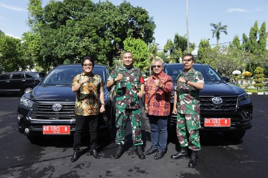 Bupati Badung Nyoman Giri Prasta beserta jajaran mengawali kunjungan ke Korem 163/Wirasatya untuk menyerahkan 2 unit kendaraan yaitu Toyota Fortuner dan Toyota Innova kepada Danrem 163/Wirasatya Brigjen TNI Choirul Anam.