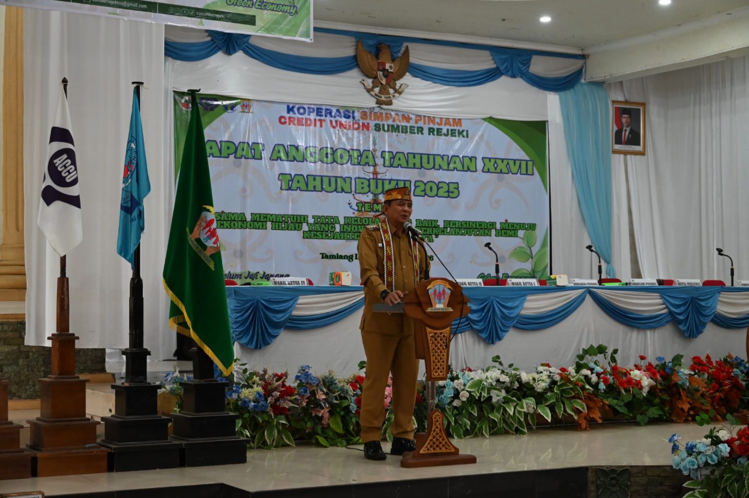 Dalam sambutannya, Bupati menekankan bahwa RAT bukan sekadar agenda rutin tahunan, melainkan forum strategis untuk memastikan tata kelola koperasi berjalan transparan, akuntabel, dan profesional. Menurutnya, kepercayaan anggota adalah modal utama yang harus dijaga melalui laporan pertanggungjawaban yang terbuka serta pengelolaan keuangan yang sehat.Ia juga mendorong agar CU Sumber Rejeki mampu beradaptasi dengan tantangan zaman, termasuk dengan mengintegrasikan prinsip ekonomi hijau dalam setiap kebijakan usaha. Pengelolaan usaha yang ramah lingkungan dan berorientasi pada keberlanjutan dinilai sejalan dengan visi pembangunan daerah yang menitikberatkan keseimbangan antara pertumbuhan ekonomi dan kelestarian lingkungan.