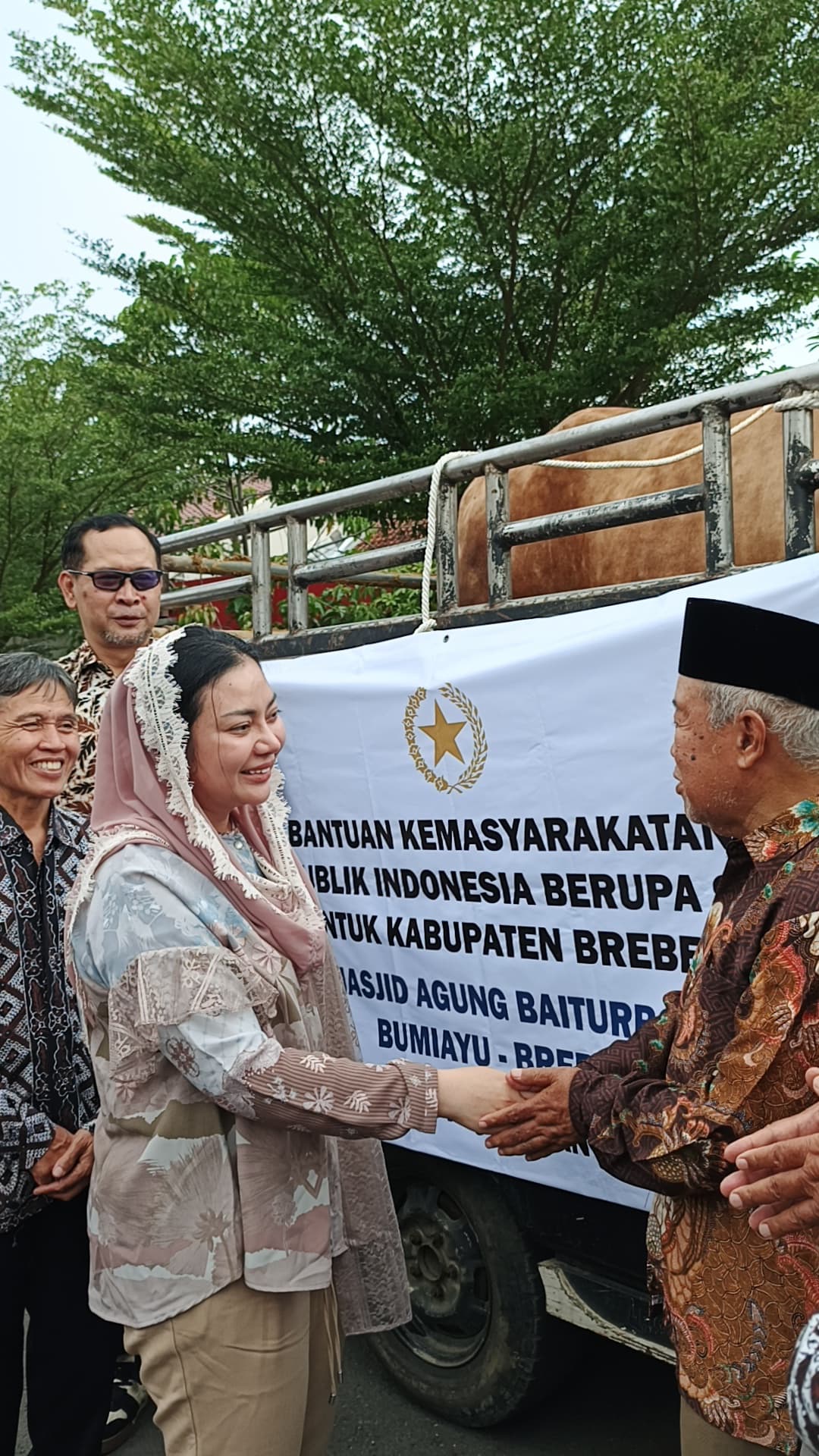 Serah terima sapi jenis lemosin berbobot mencapai 1,1 ton digelar di halaman pendopo Bumiayu pada 5 Juni 2025. Acara dihadiri Ibnu Subroto, M.Si Kepala Dinas Peternakan dan Kesehatan Hewan dan para staf, Forcompincam dan intansi terkait tokoh agama setempat.