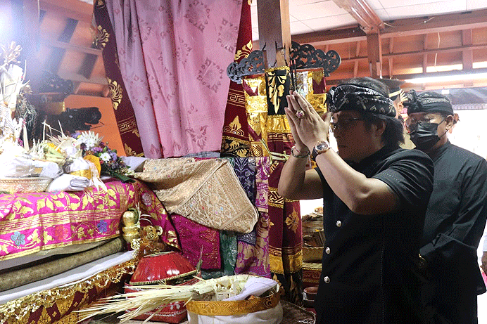 Majalahfakta.id – Menjelang dilaksanakan karya Puncak Pelebon Penglinsir Puri Agung Carangsari I Gusti Ngurah Putu Darmika pada 6 Mei, Bupati Badung I Nyoman Giri Prasta bersama ananda Bima Nata melayat Ke Puri Agung Carangsari, Kamis (5/5/2022).