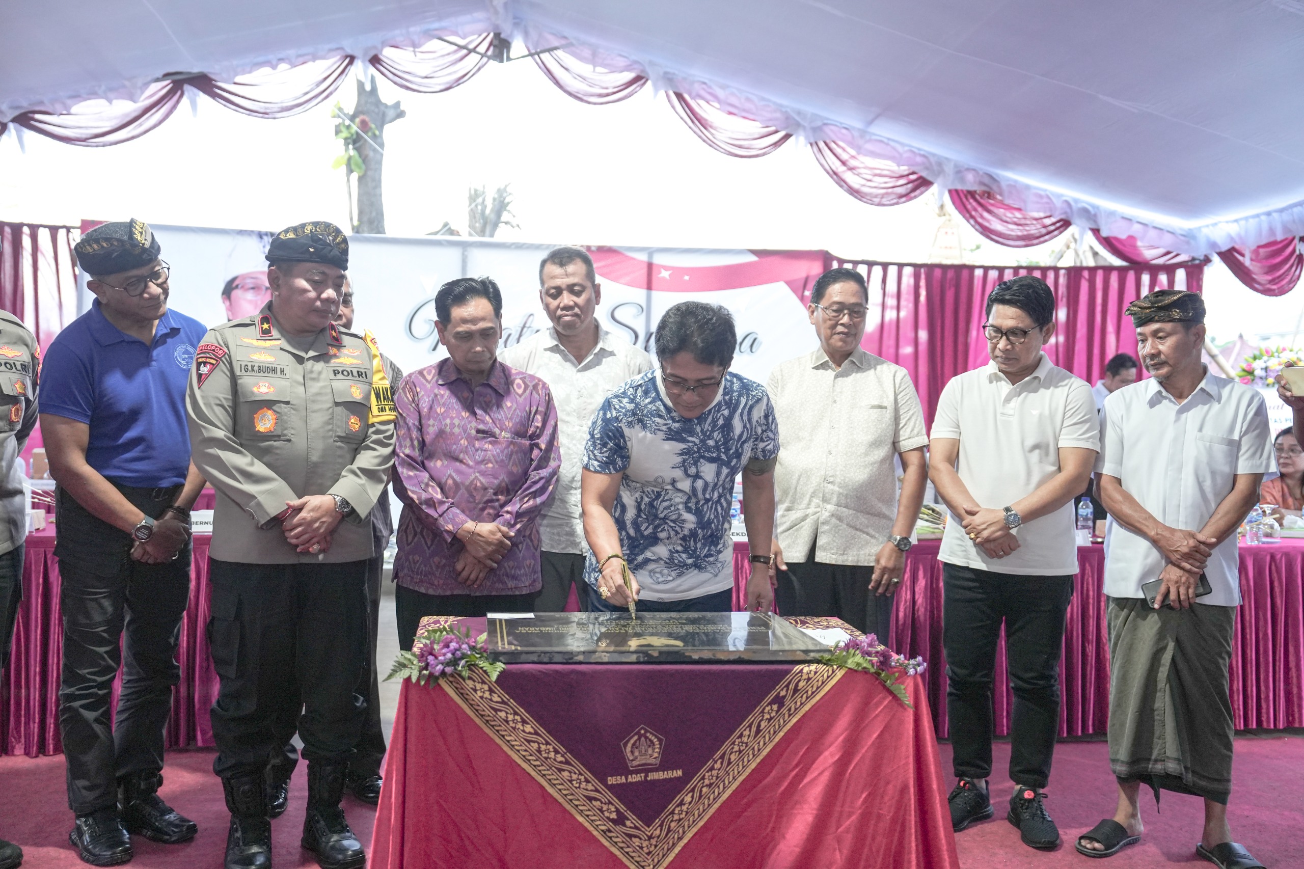 FAKTA – Bupati Badung I Nyoman Giri Prasta senantiasa berkomitmen terhadap Program Peningkatan Kapasitas Pembangunan Infrastruktur Berkelanjutan. Hal itu dibuktikan dengan rampungnya penataan Kawasan Pantai Jimbaran yang diresmikan, Jumat (26/1/2024) sore, dengan penandatanganan Prasasti di Pesisir Pantai Jimbaran. Hadir dalam kesempatan tersebut Pj. Gubernur Bali yang diwakili Asisten III Setda Provinsi Bali, Wakapolda Brigjen. Pol. I Gusti Kade Budhi Harryarsana, Perwakilan Kepala Kejaksaan Tinggi Bali, Perwakilan Ketua Pengadilan Tinggi Bali, Perwakilan Pangdam IX Udayana, Perwakilan Ketua DPRD Badung, Perwakilan Forkopimda Badung, Sekda Badung I Wayan Adi Arnawa bersama pimpinan Perangkat Daerah di lingkup Pemkab Badung, Jero Bendesa Adat Jimbaran AA. Rai Dirga Arsana Putra, serta tokoh masyarakat setempat.