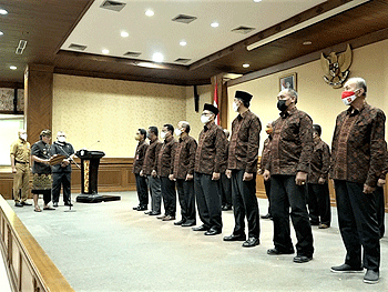 Majalahfakta.id – Bupati Badung I Nyoman Giri Prasta didampingi Ketua DPRD Badung Putu Parwata mengukuhkan Pengurus Forum Kerukunan Umat Beragama (FKUB) Kabupaten Badung periode tahun 2020-2025, di Puspem Badung, Senin (08/11/2021).