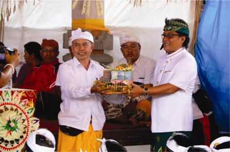 Dalam kesempatan tersebut, Bupati Giri Prasta juga membantu krama yang melaksanakan kegiatan upacara Nyekah Masal melalui dana hibah tahun 2018 sebesar Rp 400 juta.