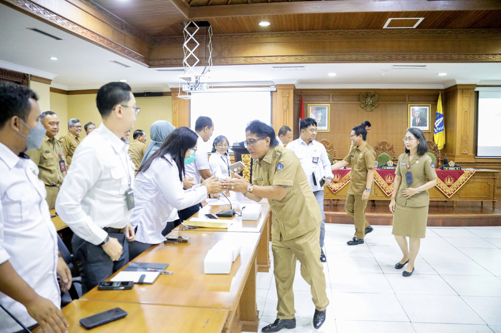 FAKTA, BADUNG – Bupati Badung Nyoman Giri Prasta didampingi Sekda Wayan Adi Arnawa, Inspektur Luh Suryaniti dan jajaran Kepala OPD di Lingkungan Pemkab Badung mengikuti Entry Meeting BPK RI Perwakilan Bali terkait akan dilaksanakannya pemeriksaan kepatuhan atas belanja daerah tahun anggaran 2022 dan 2023 sampai Triwulan III pada Pemerintah Kabupaten Badung, Senin (25/9) bertempat di Ruang Kriya Gosana Puspem Badung.