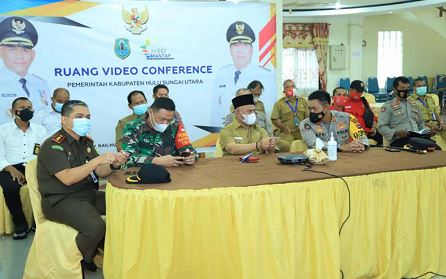 Beberapa waktu yang lalu, Bupati HSU H Abdul Wahid HK bersama unsur Forum Komunikasi Pimpinan Daerah (Forkopimda) HSU serta Satuan Kerja Perangkat Daerah (SKPD) terkait mengikuti Video Conference (Vidcon) arahan Presiden Republik Indonesia (RI) Joko Widodo dengan agenda Rapat Koordinasi Pengendalian Kebakaran Hutan dan Lahan (Karhutla) di Mess Negara Dipa.