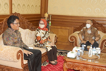 Majalahfakta.id Bupati Badung I Nyoman Giri Prasta didampingi Sekda Badung I Wayan Adi Arnawa menerima kunjungan kerja (Kunker) Bupati Jombang, Jawa Timur Hj. Mundjidah Wahab beserta pejabat terkait Pemkab Jombang di Puspem Badung, Jumat (15/10/2021).