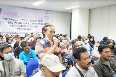 Dalam kegiatan tersebut dihadirkan tiga narasumber. Diantaranya Ketua Komisi Pemberdayaan Organisasi Dewan Pers Indonesia Asmono Wikan serta Ketua DPRD Sidoarjo Usman dan Anggota Komisi D DPRD Kabupaten Sidoarjo Rizza Ali Faizin.