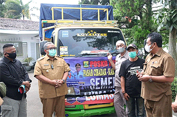 Majalahfakta.id – Bupati Sukabumi Marwan Hamami melepas keberangkatan bantuan kemanusiaan dari warga Pasar Cibadak untuk korban Semeru, di Pendopo Sukabumi, Selasa, (21/12/2021).