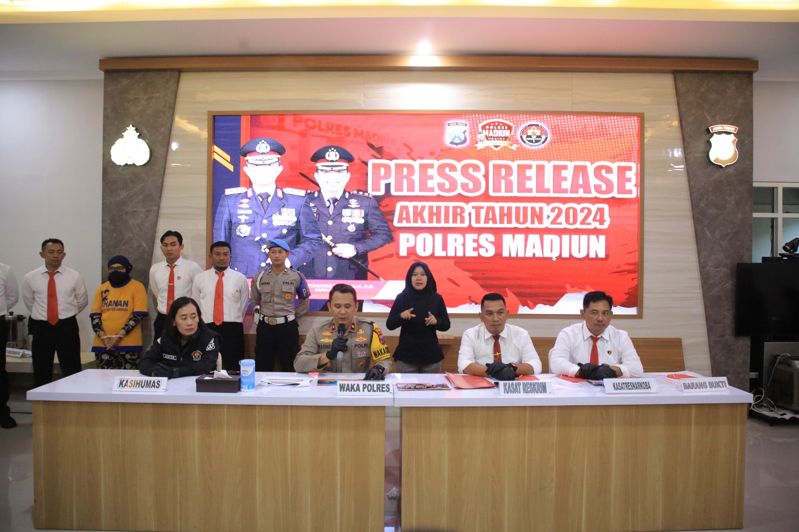 FAKTA – Kepolisian Resort (Polres) Kabupaten Madiun menutup tahun 2024 dengan menggelar press release yang memaparkan berbagai pencapaian gemilang sepanjang tahun ini.