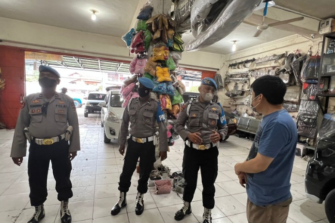FAKTA – Personel Subbid Provos Bid Propam Polda Papua melaksanakan sambang di Toko Variasi Mobil guna melakukan pencegahan terhadap penggunaan lampu Strobo kendaraan pribadi maupun umum, Selasa (12/7/2022) siang.