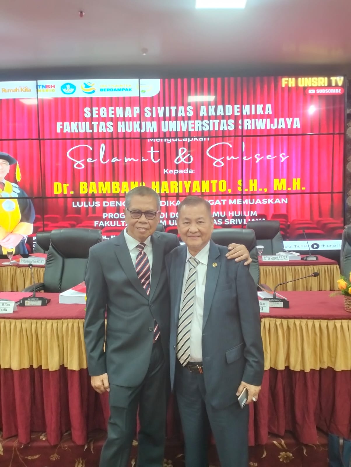Chairul mengucapkan selamat atas keberhasilan Bambang Hariyanto menyelesaikan pendidikan Doktor di Fakultas Hukum Universitas Sriwijaya (Unsri).