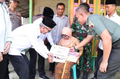 Dilanjutkan Penyerahan bantuan oleh Letkol Kav Endi Siswanto Yusuf (Dandim 0812/Lamongan) dan H. Bambang Eko Muljono (Ketua Baznas Kab. Lamongan) kepada 8 orang penerima bantuan Sosial Kepada penerima RTLH (Rumah Tidak Layak Huni) Unggulan Kodim 0812/Lamongan yang terdiri dari ibu Bati warga desa menongo Kec Sukodadi, Ibu Sanipah warga desa Sendangrejo kac Lamongan, ibu Sawi warga desa mungli kec kalitengah, ibu Kasti warga desa Yungsang Kec Modo, Ibu Ukuwah Islamiyah warga desa tebluru Kec Solokuro, Bapak Muhammad Warga Desa Songowareng Kec Bluluk, Ibu Tumisih warga desa kedungbanjar Kec Sambeng, Bapak Arta warga Desa Tritunggal Kec Babat kab Lamongan.
