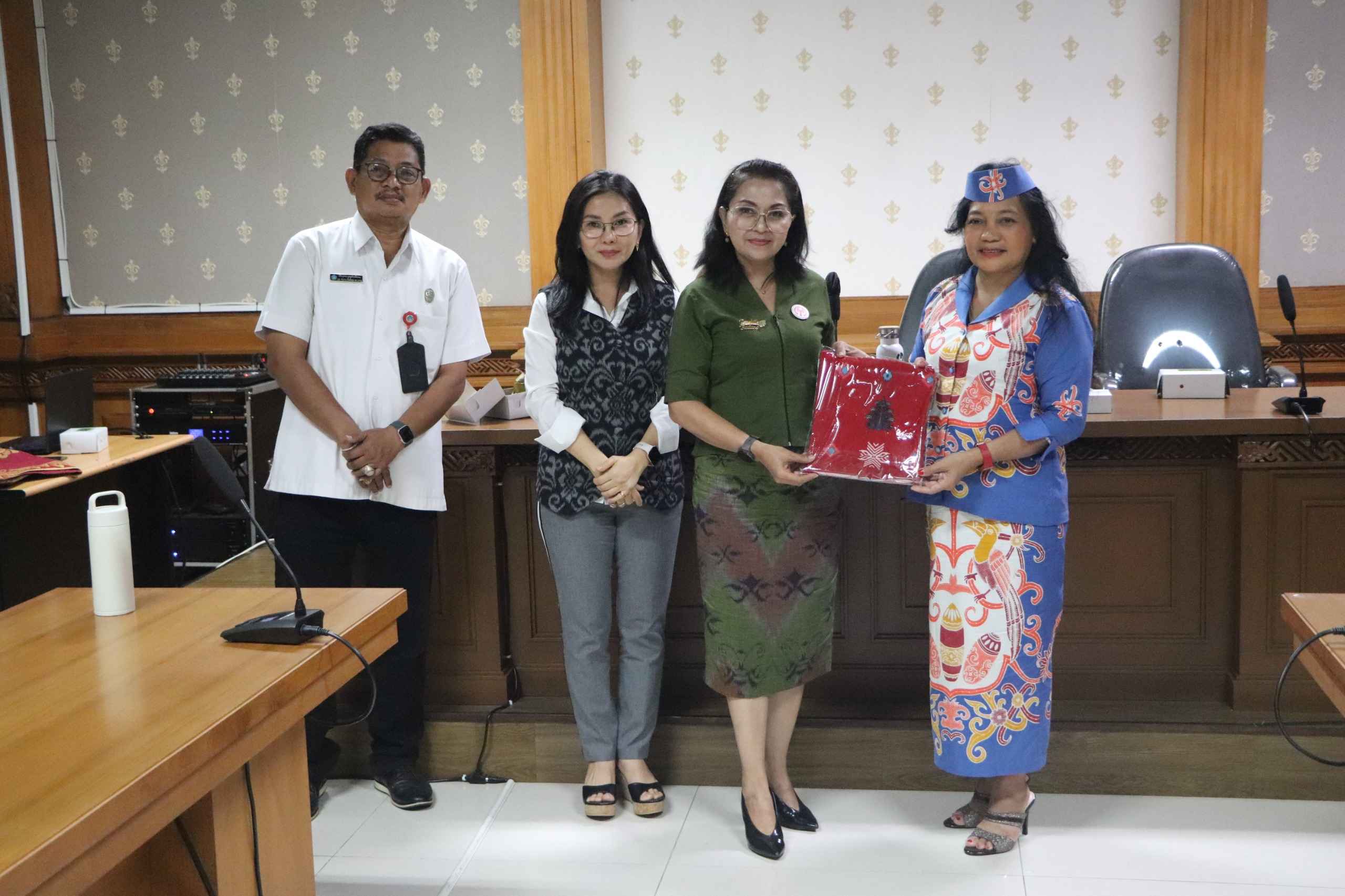 FAKTA – Ketua Dewan Kerajinan Nasional Daerah (Dekranasda) Kabupaten Badung, Rasniathi Adi Arnawa, didampingi Ketua DWP Oliviana Surya Suamba dan Kepala Bidang Sarana Prasarana Industri Dinas Perindustrian Kabupaten Badung, IB. Putu Dharma Wijaya, menyambut kunjungan kerja dari Gabungan Istri Anggota Dewan (Gatriawan) Kabupaten Katingan, Kalimantan Tengah, yang dipimpin oleh Ketua Gatriawan, Rustiasi Kartini Indah Marwan Susanto beserta jajaran. Acara penyambutan berlangsung di Balai Budaya Giri Nata Mandala, Puspem Badung, pada Rabu (26/11/2025).