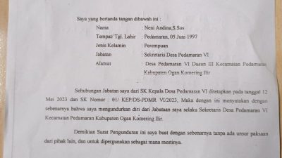 FAKTA – Demo di Kantor Desa Pedamaran 6, Kecamatan Pedamaran, Kabupaten Ogan Komering Ilir (OKI) yang terjadi, Senin (9/9/2024) siang, Kepala Desa Pedamaran 6, Makmun Murod memberikan klarifikasi kepada media, “Demo dilakukan hanya sekitar 8 orang, bukan ratusan seperti yang diberitakan, yaitu inisial ID, warga Desa Pedamaran 5, DK warga Desa Menang Raya, RA dan AN (suami istri), NA, DA warga Desa Pedamaran 6 dan 2 orang lainnya yang tidak kami kenal karena semua pendemo memakai kerudung, masker dan berkacamata hitam seperti ninja.”