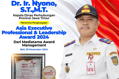 Kali ini, Kepala Dishub Provinsi Jatim menerima penghargaan Asia Executive Professional dan Leadership Award 2024 dari Mediatama Award Management pada 29 November 2024 di Bali.