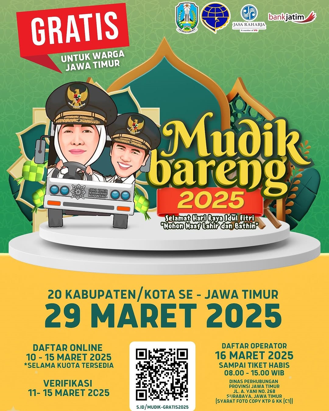 FAKTA – Pemerintah Provinsi Jawa Timur melalui Dinas Perhubungan (Dishub) telah membuka pendaftaran mudik gratis 2025.